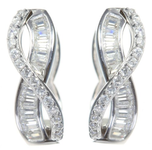 Elegante 925 Sterling Silber Damen - Paar Ohrringe mit Zirkonia 0.02 Karat - 19mm*5mm