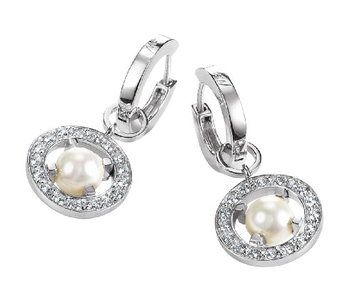Merii Damen-Creolen 925 Sterlingsilber rhodiniert Zirkonia weiß 35 mm M0412E/90/03 Feature