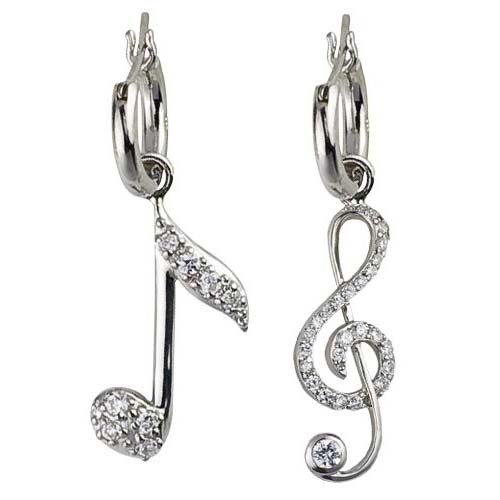Schmuck-Pur Silber Zirkonia-Creolen mit Behang Noten-Schlüssel