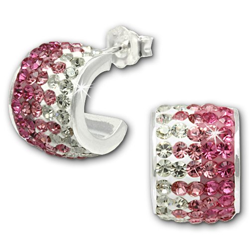 SilberDream Glitzer Creole Beauty rosa/weiße Preciosa Glitzer Kristalle 925 Sterling Silber Ohrringe GSO010A