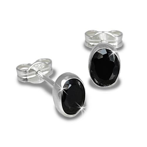 SilberDream Ohrringe oval Zirkonia schwarz 925 Sterling Silber Ohrstecker SDO552S