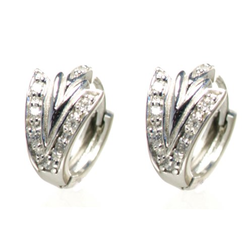 Bella Carina 925 Silber Creolen, Kreolen, Klappcreolen rhodiniert, Ohrringe mit Zirkonia Steinen - weiß, Durchmesser ca. 13,5 mm.