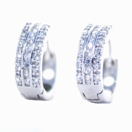 Bella Carina 925 Silber Creolen, Kreolen, Klappcreolen rhodiniert, Ohrringe mit Zirkonia Steinen - weiß, Durchmesser ca. 14,5 mm.