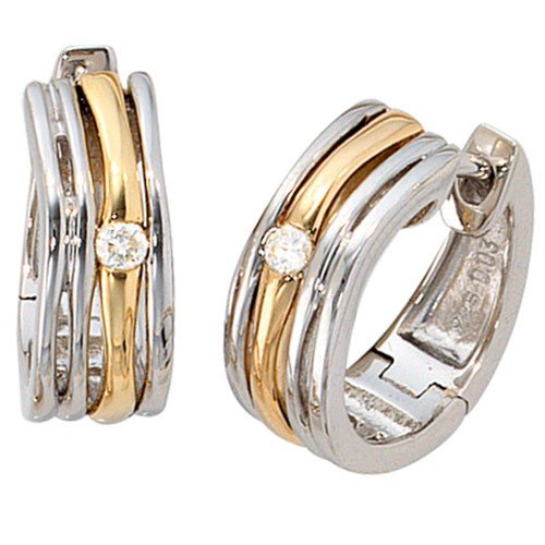 Creolen Creole Ohrringe 2 Brillanten 585 Gold & 925 Silber kombiniert Damen