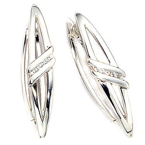 JOG Paar Creolen , 925 Sterlingsilber , rhodiniert , teilmattiert , 10 Zirkonia , Klappmechanik (ca. 5 ,6 g) , Höhe ca. 32 ,3 mm Feature
