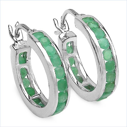 SchmuckMart 1.80ct. Smaragd Creolen Ohrringe Silber 925er Rhodiniert Kanalfassung Feature