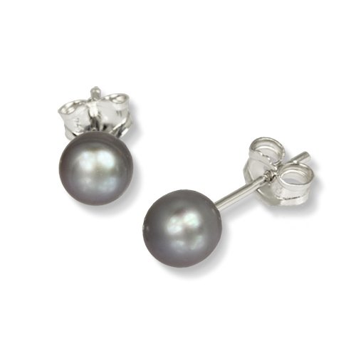 SilberDream Ohrstecker Süßwasser-Zuchtperle grau 5mm 925 Sterling Silber Ohrringe SDO105K