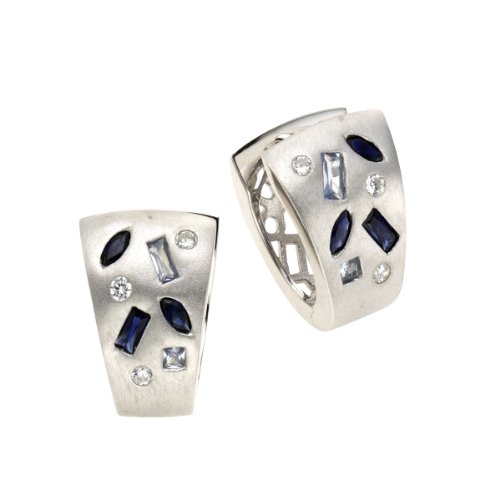 ZEEme Silver Damen-Klappcreole in 925/- Sterling Silber mattiert mit Zirkonia synthetischem Safir und Aqua 273210244-3
