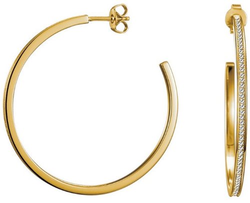 Esprit Damen-Steckcreolen shinyverse gold 925 Sterlingsilber vergoldet 58 Zirkonia farblos ESER91077B000