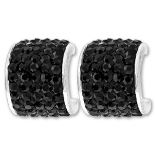Schmuck-Pur Echt Silber Steck-Creolen Kristalle schwarz 10mm