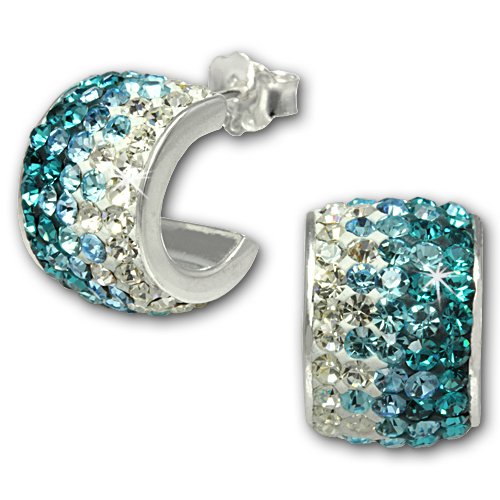 SilberDream Glitzer Creole Beauty türkis/weiße Preciosa Glitzer Kristalle 925 Sterling Silber Ohrringe GSO010T