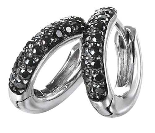 Merii Damen-Creolen 925 Sterlingsilber rhodiniert Zirkonia schwarz 15 mm M0366E/90/43