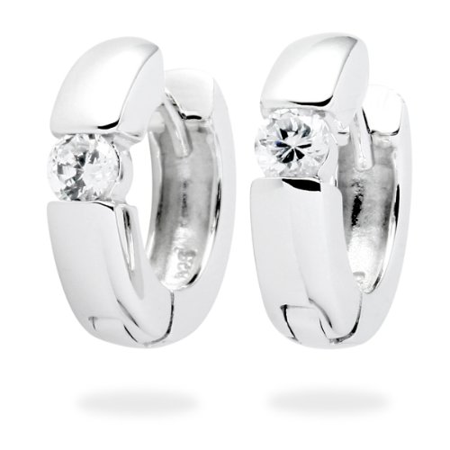 Rafaela Donata Argento Classico Damen-Klappcreolen Sterling Silber Zirkonia weiß Zargenfassung 60800015