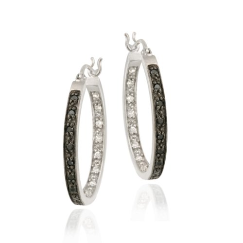 Sterling Silber Schwarze Zirkonia 25mm Ovale Creolen Feature